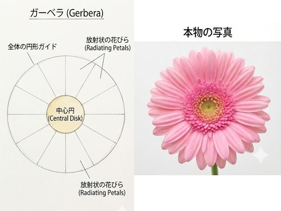 3. ガーベラ:平らな「円盤」と「放射線」として捉える