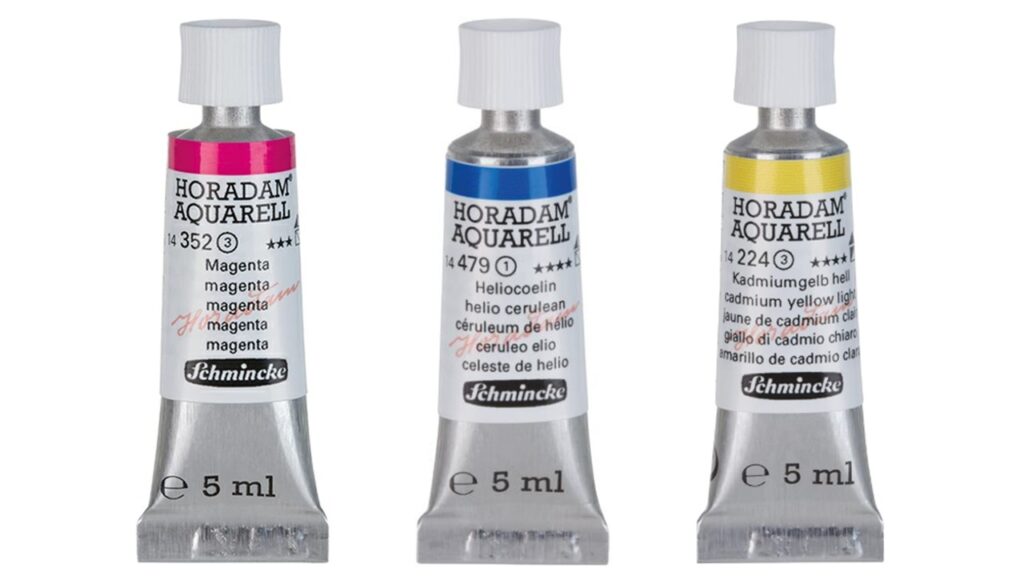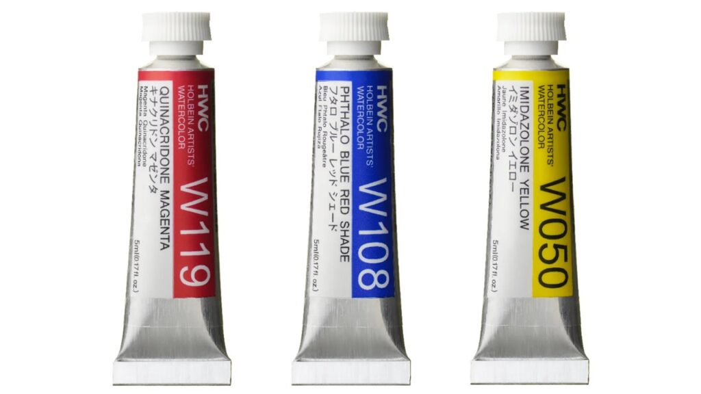 各メーカーの標準的な水彩絵の具であれば、どれを選んでも三原色の練習は十分にできます。